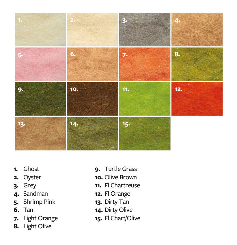 1g of expertly blended saltwater style dubbing perfect for tying tropics patterns such as crabs and shrimps. Specifically dyed to match saltwater style flies.
